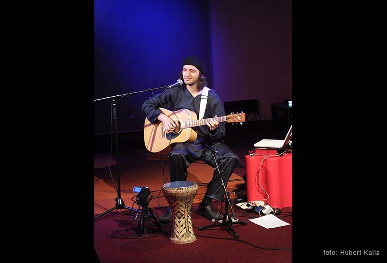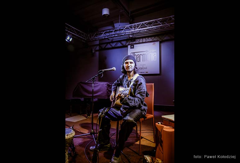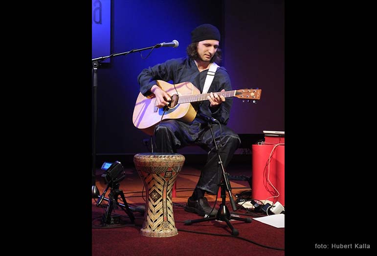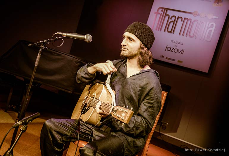 Dima Gorelik jest muzykiem świata. W swoim przeszło trzydziestoletnim życiu otarł się o wiele kultur, środowisk muzycznych i miejsc na mapie świata, z których czerpał inspiracje do stworzenia własnego portretu muzycznego. A ten jest wielowątkową podróżą przez Ukrainę, Rosję, Izrael, a teraz także i Polskę, w której mieszka, i z którą jest związany od pięciu lat. Mimo, że jego najlepszym kanałem wyrazu jest muzyka, dał się poznać także jako znakomity gawędziarz. Wprowadzając słowem do utworu, budował atmosferę miejsca, które z niesamowitym wyczuciem opisywał muzyką. Kiedy minęło „godzinę i pięć minut”, nie było mowy, by zszedł ze sceny bez bisu, dzięki czemu Dima był tego wieczoru naszym kolegą na nieco dłużej niż „godzinę i pięć. Dlatego cała przyjemność po naszej stronie.
