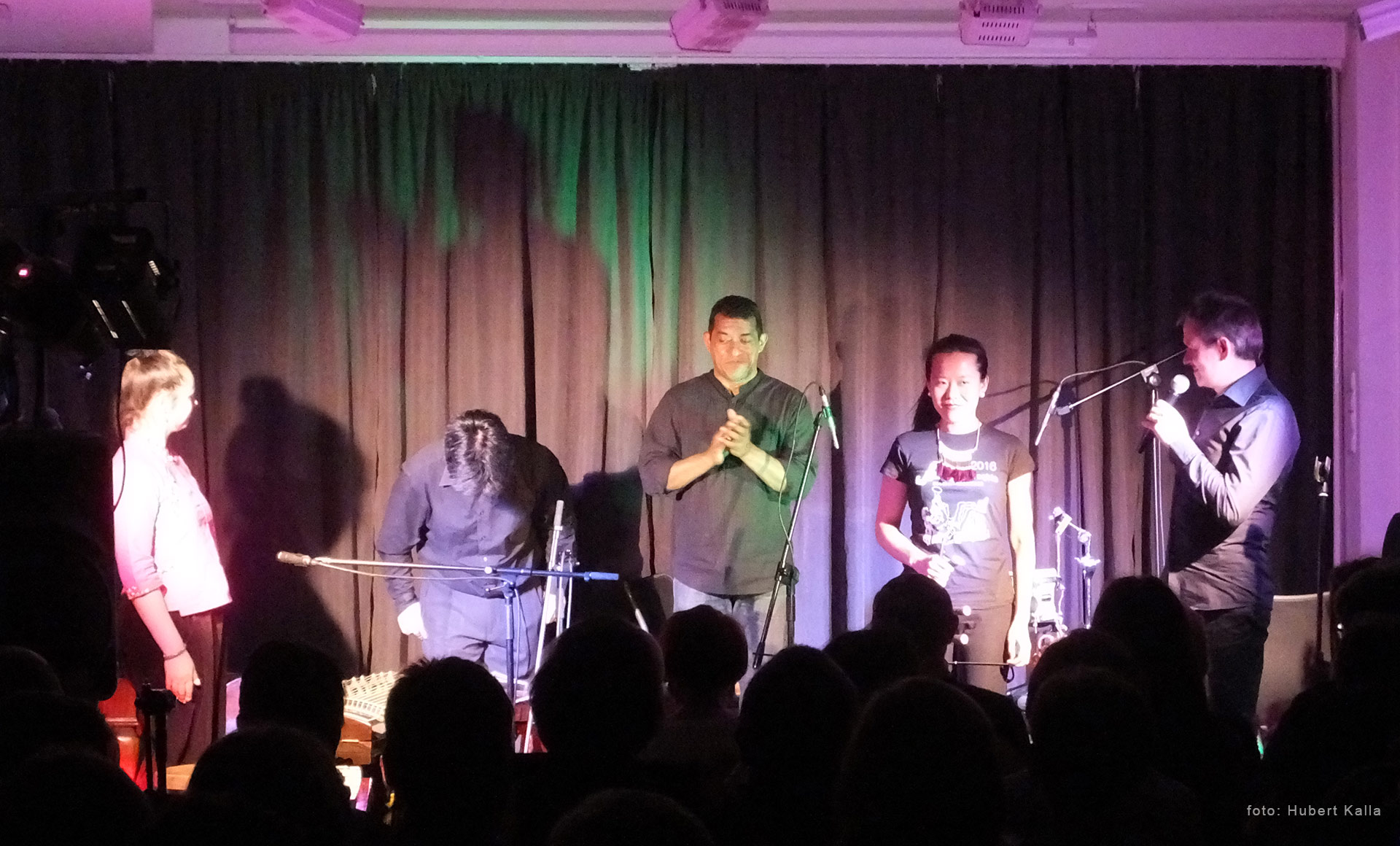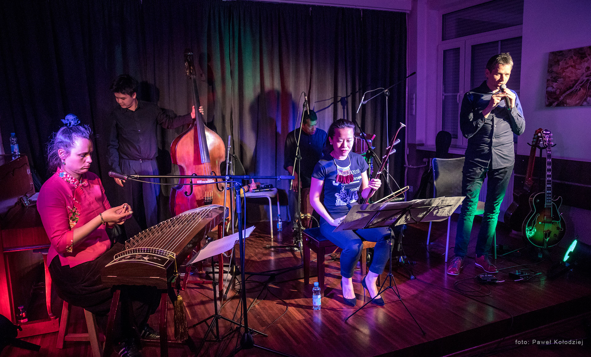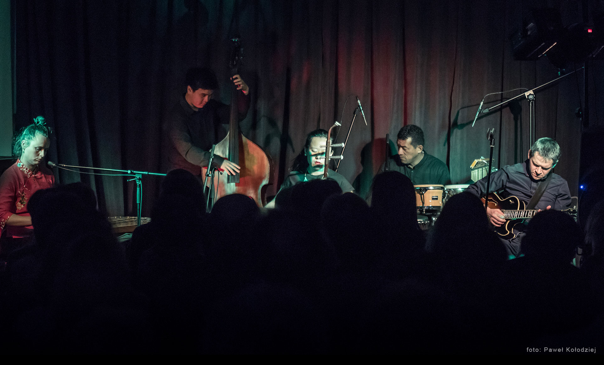Niejeden raz mieliśmy już dowody na to, że muzyka działa ponad jakimikolwiek granicami. Od dzisiaj wiemy, że można pójść o krok dalej, mamy niezaprzeczalne dowody na transkontynentalne porozumienie dźwięków. Ten projekt Przemysława Strączka zrodził się z fascynacji do klimatu dalekiego wschodu. Stworzył dzięki temu opis świata, który bije na głowę wszystkie podróżnicze atlasy, bo bezbłędnie oddaje atmosferę świata nam odległego. Na scenie było ich pięcioro: Przemek, Amy, Anna, Yi Zhe, Thomas. Pochodzą z Europy, Azji i Ameryki południowej, ale posiadają filing, jakby byli z jednej, dobrze nastrojonej, rodziny. Może trudno było nam wymienić nazwy wszystkich instrumentów, których melodyka budowała nasze dzisiejsze emocje, ale nie trudno było się tą melodyką oczarować.