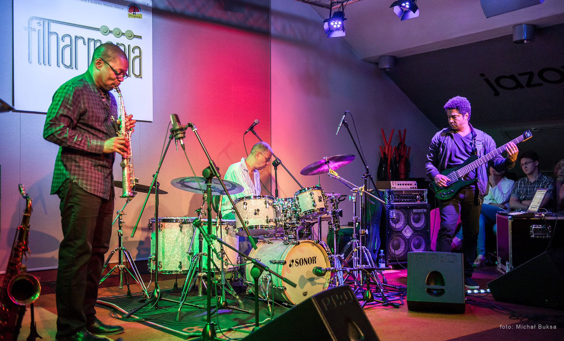 Na ten wieczór gotowi byliśmy już od pierwszego dnia, w którym dowiedzieliśmy się, że zagrają w Polsce, w Gliwicach, w Jazovii. Z każdym kolejnym dniem jedynie rósł apetyt, który w momencie wejścia na sale był już nie do zniesienia. Nie ma wątpliwości, dzisiejszy koncert stanowił najmocniejszy i chyba najbardziej wyczekiwany punkt tegorocznego kalendarza Filharmonii. Kompozycja tych trzech muzyków, to jak składanka z kategorii „best of the best”. Jack DeJohnette, Matt Garrison, Ravi Coltrane. Pierwszy to legenda, jeden z tych, którzy są filarami gatunku, gigantami jazzu i wciąż kwitnącą inspiracją dla kolejnych pokoleń muzyków. Drugi to basista, który muzyczny feeling przejął w genach i nadaje całości pięknej głębi. Ravi Coltrane – dzięki swoim rodzicom (John Coltrane i Alice Coltrane) mógł albo pokochać, albo znienawidzić muzykę. Na nasze szczęście wybrał to pierwsze. Dali dzisiaj koncert pełen abstrakcji, który w dużej mierze opierał się na niezależnej wypowiedzi dźwiękowej każdego z artystów. Pokazali swobodę ekspresji i siłę indywidualności, która w takim zestawieniu łączy się w jedną zespołową kompozycję. Dla takich postaci instrument jest narzędziem wypowiedzi bardziej czytelnym niż słowa. To był jeden z tych koncertów, w których publiczność podąża za wyobraźnią muzyka, sczytuje dźwięki jak opis aktualnego stanu artysty. Ten koncert to był cały zestaw motywów: od free jazzu, po spokojne, fortepianowe dźwięki spod palców Jack’a DeJohnette. Były wirtuozerskie popisy, muzyczna zabawa i czas uspokojenia przy kojącej melodyce. Powtarzamy: Ci muzycy już nic nie muszą, Oni wszystko mogą…i robią wszystko co najlepsze. Dziękujemy